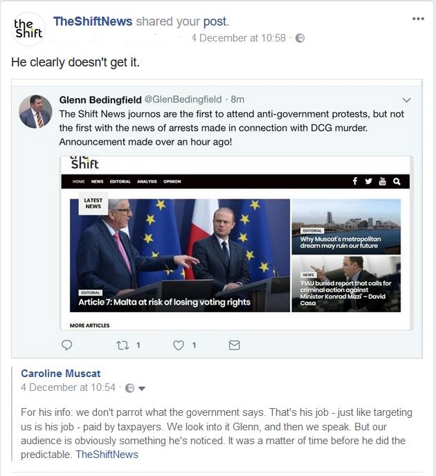 Within an hour of the arrests, Labour MP and OPM blogger Glenn Bedingfield launched an attack on The Shift on Twitter for not reporting the government’s press conference.