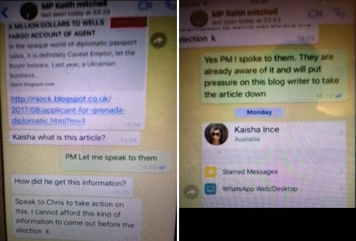 Caribbean News Now reported that WhatsApp messages purportedly exchanged between Grenada’s Prime Minister Keith Mitchell and the chairperson of Grenada’s CBI Committee, Kaisha Ince showed that the latter was asked to “speak to Chris,” believed to be Christian Kalin, the chairman of Henley and Partners over the report on the Ukrainian businessman.