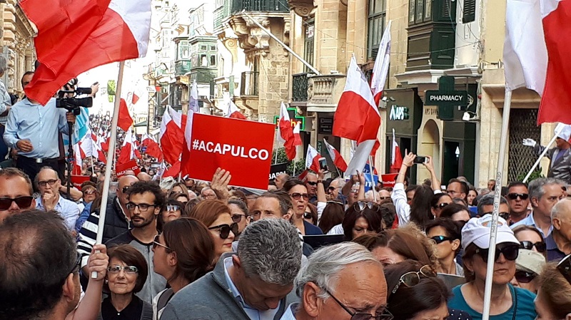 Thousands walked down Merchant Street and Republic Street in Valletta on Sunday chanting ‘gustizzja’ (justice) and ‘barra’ (out) in a protest organised by activists to demand political responsibility and independent investigations into the revelations on corruption and money laundering.