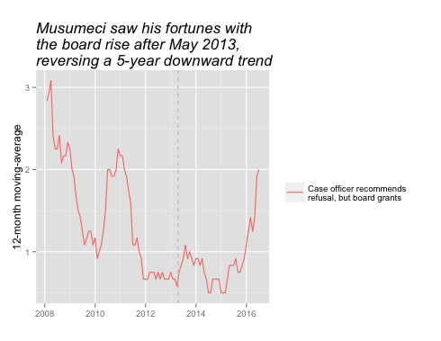 Between May 2013 and June 2016, there were a total of 115 decisions on Musumeci’s client’s ODZ applications, 79% of which were decisions to grant permission.