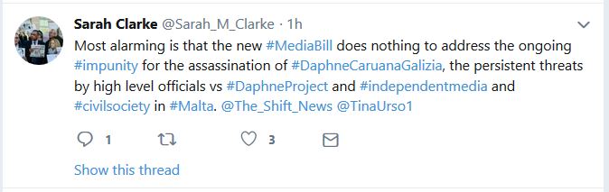 “Most alarming is that the new Media Bill does nothing to address the ongoing impunity for the assassination of Daphne Caruana Galizia, the persistent threats by high level officials vs the Daphne Project and independent media and civil society in Malta,” she added.