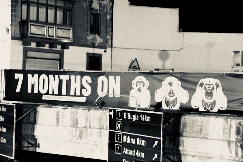 All the banners placed overnight were swiftly taken down by the authorities by 9am this morning, something which has become a regular occurrence when banners calling for justice for Caruana Galizia are erected. In contrast, banners placed in the same way to promote the message of the Labour Party’s youth arm do not receive the same treatment.