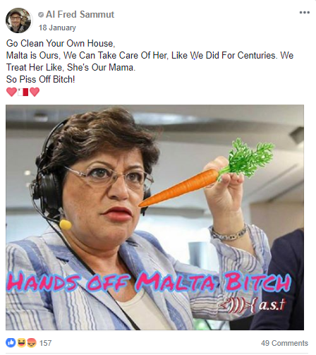 Insults hurled at the MEPs included “traitor bitch”, “whore”, “pufta”, “trash”, “filth”, “shameful”, alongside calls for them to be “removed”, attacked when they go to Malta, and for them to “go fuck” themselves.
