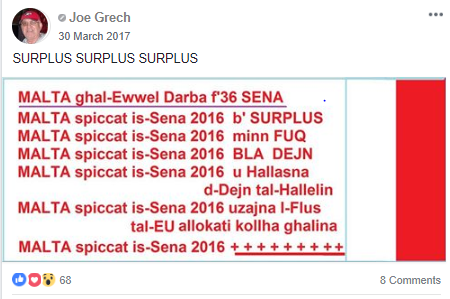 When the government’s 2017 surplus of €182.6m was published in March 2018, Muscat and the Labour Party called it a “record”, and spread the news of “L-akbar surplus fl-istorja ta’ pajjiżna” (the biggest surplus in our country’s history) across Party-owned media and its online groups.