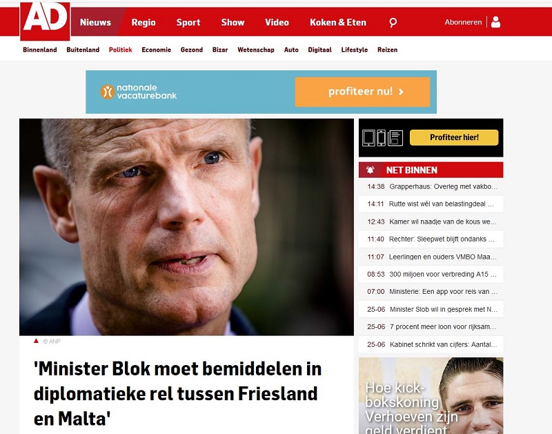 However, this week, Dutch media reported that Friesland and the CDA feel that Blok must intervene as it was important for Malta and the Netherlands to keep up the good relations. “European capitals must work together. There are still a number of projects in the pipeline, for example in the field of potatoes, where both regions are very strong. But if you work together, European values must be respected,” Molen said.