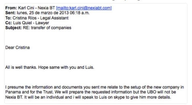 The client for Mossack Fonseca in this case would be Nexia BT.