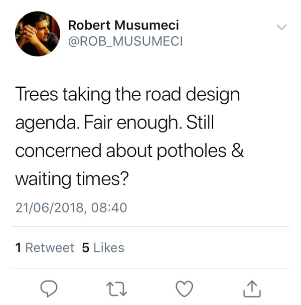 Government officials try forcing you into a false binary choice, typically “us” versus “them” or on particular issues. Consultant to the Prime Minister Robert Musumeci reacted to public outrage over the ‘Rabat Road’ tree uprooting by tweeting: “Trees taking the road design agenda. Fair enough. Still concerned about potholes & waiting times?” Musumeci excluded the possibility of having both trees and good roads.