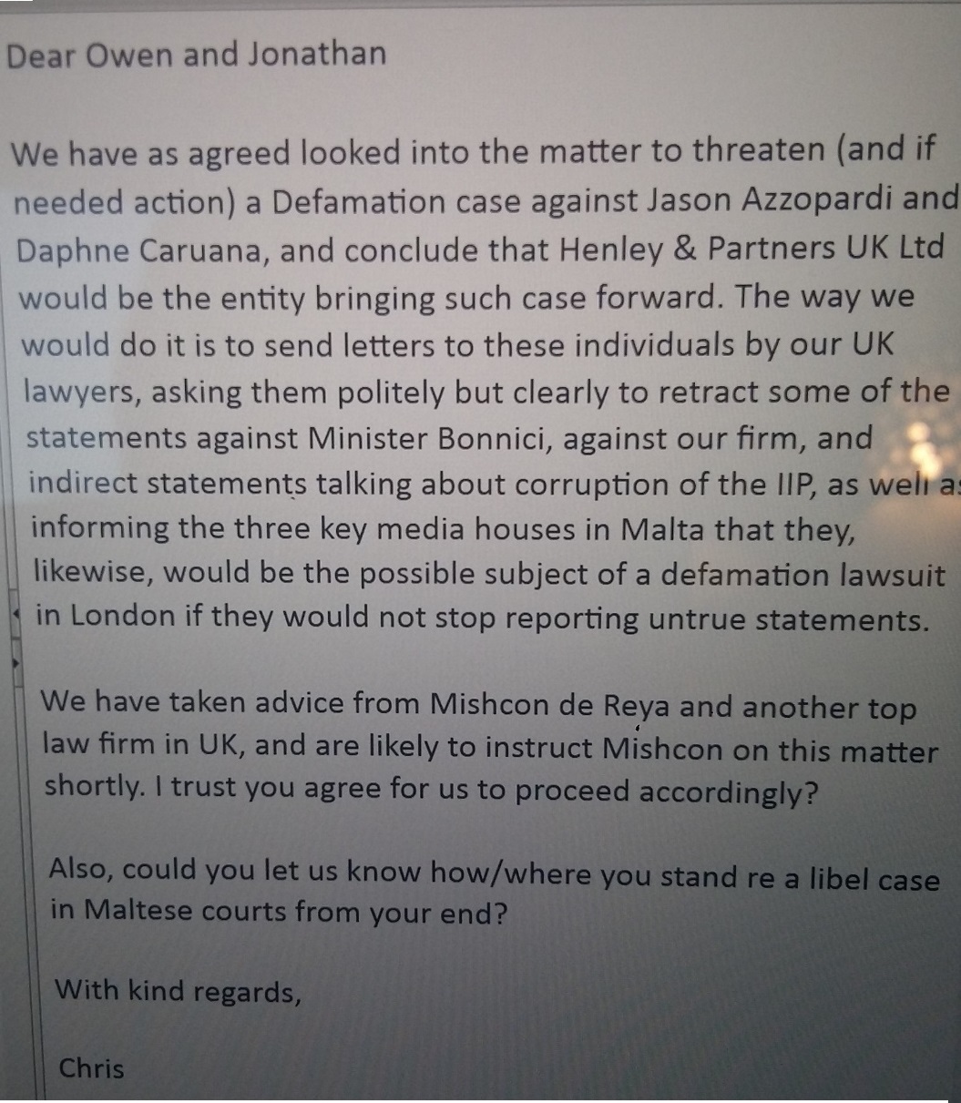 Which is why the Justice Minister’s documented collusion with Henley & Partners in the threat of a SLAPP suit against assassinated journalist Daphne Caruana Galizia and other media outlets is nothing short of shameful.