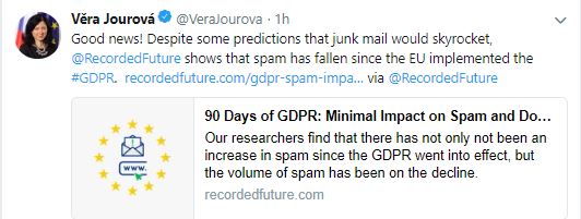 The amount of spam email and registrations in spam-heavy domains decreased since the introduction of the recent changes to the data protection laws across the EU.