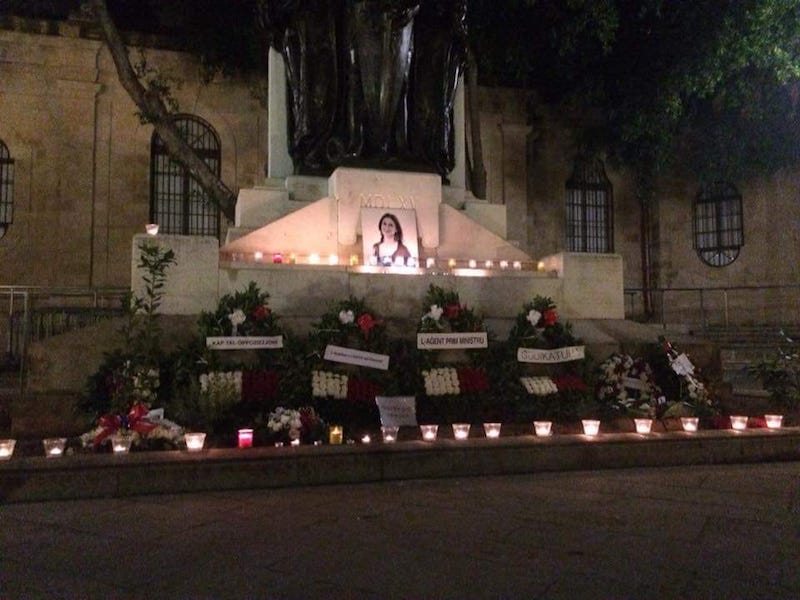 Every time the monument was cleared of flowers, candels and messages dedicated to Caruana Galizia, activists have immediately replaced them.
