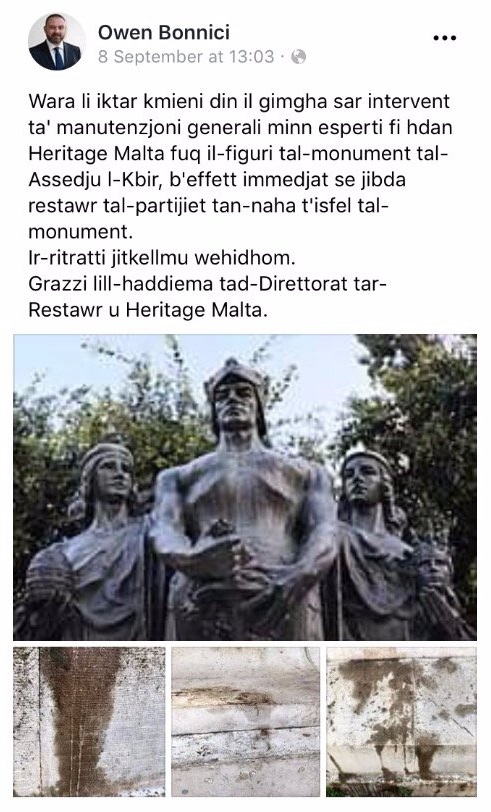 On the day the monument was blocked off, Bonnici posted on social media that the government’s reason for denying public access to the monument was that restoration works would start “with immediate effect”.