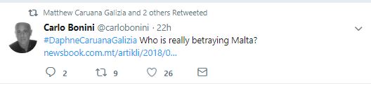 La Repubblica journalist Bonini asked, “Who is really betraying Malta?” in a Twitter post.