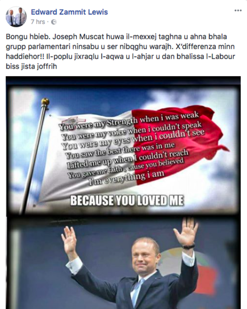 Zammit Lewis, who once wrote a love poem to the Prime Minister that plagiarised Celine Dion’s lyrics in the song ‘Because you loved me’, conveniently ignored the contents of the newspaper report.