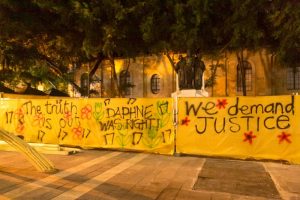 The messages at the protest memorial called for justice for Caruana Galizia, as the Maltese government faced criticism at the the UN’s highest human rights body – the Human Rights Council (HRC) – in its review of the country’s track record on human rights this week.