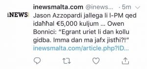 In a statement spread by Labour trolls, the General Workers Union news portal iNews Malta, and Labour MEP Miriam Dalli, Bedingfield claimed that Azzopardi used his parliamentary privilege to say that Muscat was pocketing €5,000 a day.