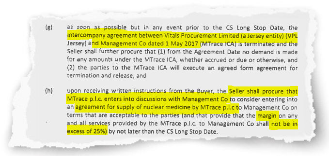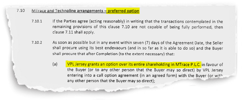 The agreement includes two scenarios of how the sale would happen in relation to each of Technoline and Mtrace with one described as a “preferred option” and the other as essentially what should happen if the preferred option is not achievable.