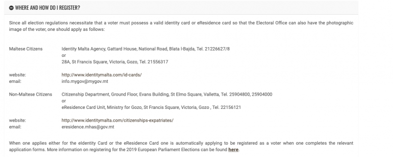 Following an email request from The Shift News to the Electoral Commission, one section of the website was updated. The Commission said it also took note of the Gzira local council and Marsascala police station’s actions, where a journalist requesting the information as an EU citizen was turned away.