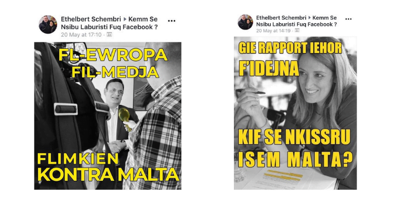 He usually sends in his troops to do the dirty work. One of Labour’s largest online hate groups was reactivated in the lead up the election. There was a surge of activity and memes and hate, focusing on Casa and Metsola. These (below) were by Ethelbert Schembri, who was posting photos with Panama Papers Minister Konrad Mizzi after yesterday’s Labour victory.