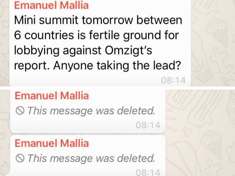 Mallia was undeterred, sending a message to the Malta delegation on a social media app on Thursday informing them that the South EU Summit held in Malta on Friday would be a good opportunity to “lobby against Omtzigt’s report”.