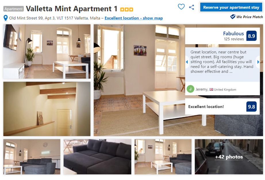 The flat above Bonnici’s was split into two and each rents out for around €75 a day in low season (November), depending on the number of people staying in each space. Prices increase significantly in high season, when both apartments are sold out.