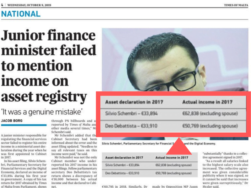 In essence, Schembri and Debattista did not include any income in their annual asset declarations for roughly the first six months of the year in 2017.