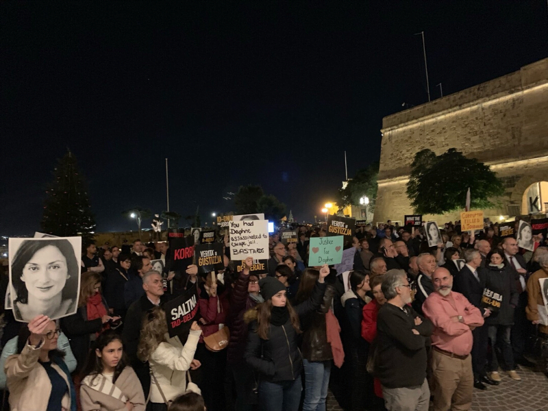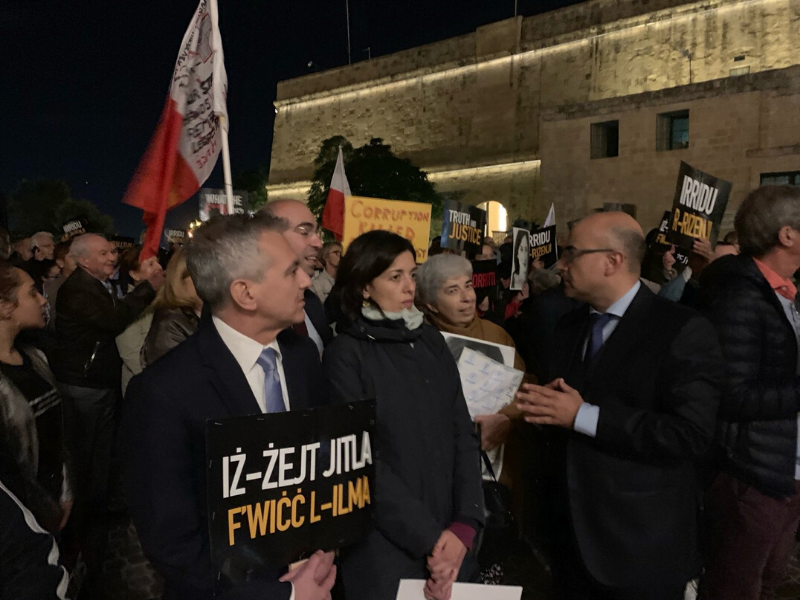 The protest was organised by civil society groups Repubblika and #occupyjustice, who said in a statement, “Joseph Muscat is accountable for what he himself described as ‘an assault on our democracy’. Now he must leave. If he doesn’t he must be fired. His party, his parliamentary group, Parliament have the power and the duty to have him removed if he does not go of his own free will.”