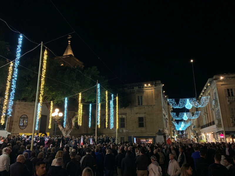 Hundreds of people filled Castille Square in front of the Prime Minister’s office on Wednesday evening demanding Joseph Muscat’s resignation after businessman Yorgen Fenech was arrested while attempting to flee Malta in his private yacht.