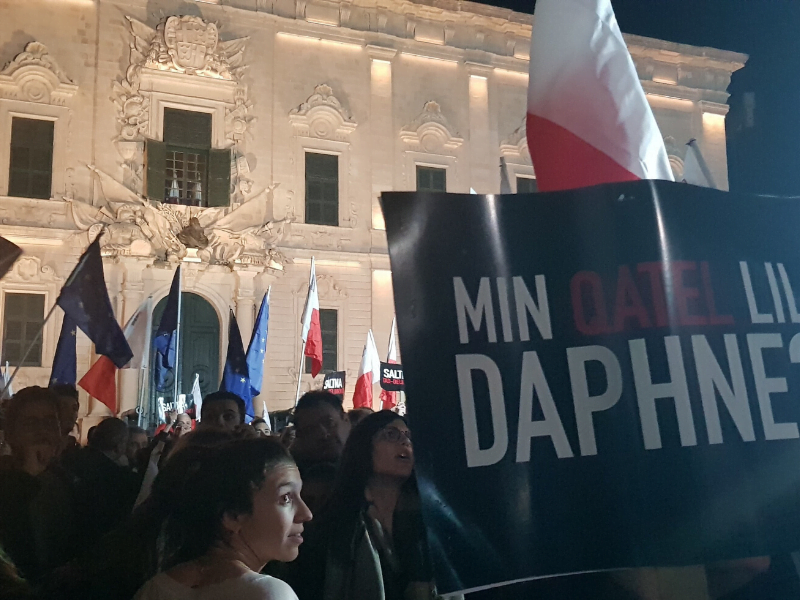 Castille Square was a sea of flags as thousands of citizens packed the space in front of the Office of the Prime Minister to call for an end to impunity.