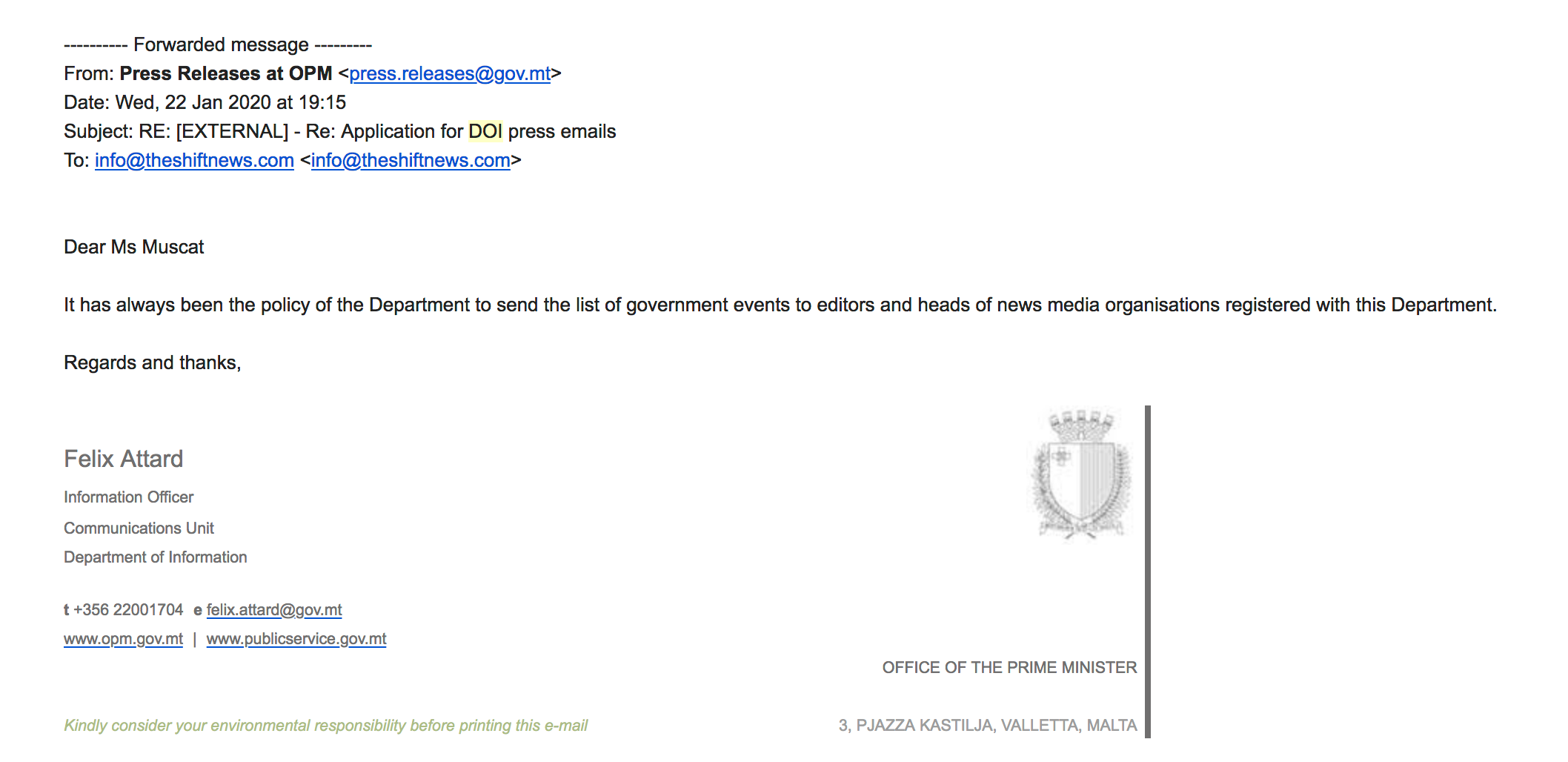Editor’s statement in response to DOI’s claims on press access