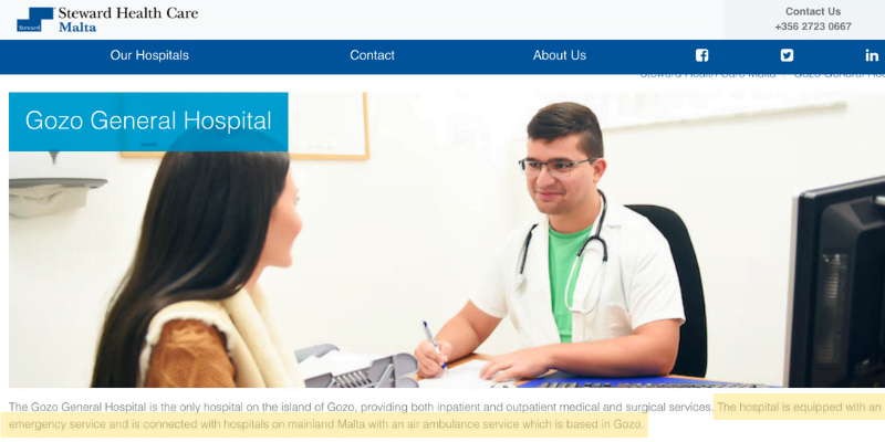 The current phase of the contingency plan is Phase 1 in which potential patients will be transferred to Mater Dei. The company’s website boasts that it is “equipped with an emergency service and is connected with hospitals on mainland Malta with an air ambulance service which is based in Gozo”.