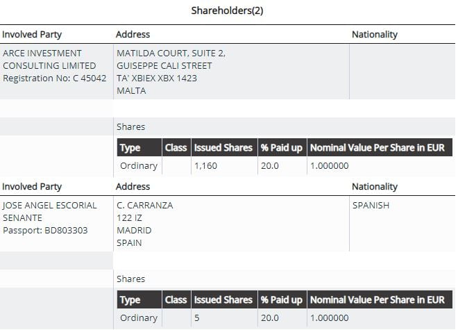 The company that got the contract is run by José Ángel Escorial who set up two companies in Malta: Delta Advisory and Management Services Limited, and Arce Investment Consulting Limited.