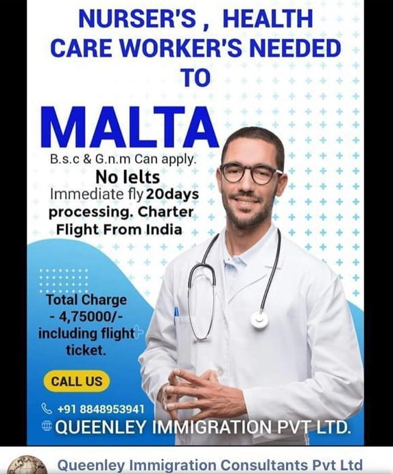 A call for nurses to come to Malta was taken up by some dodgy companies