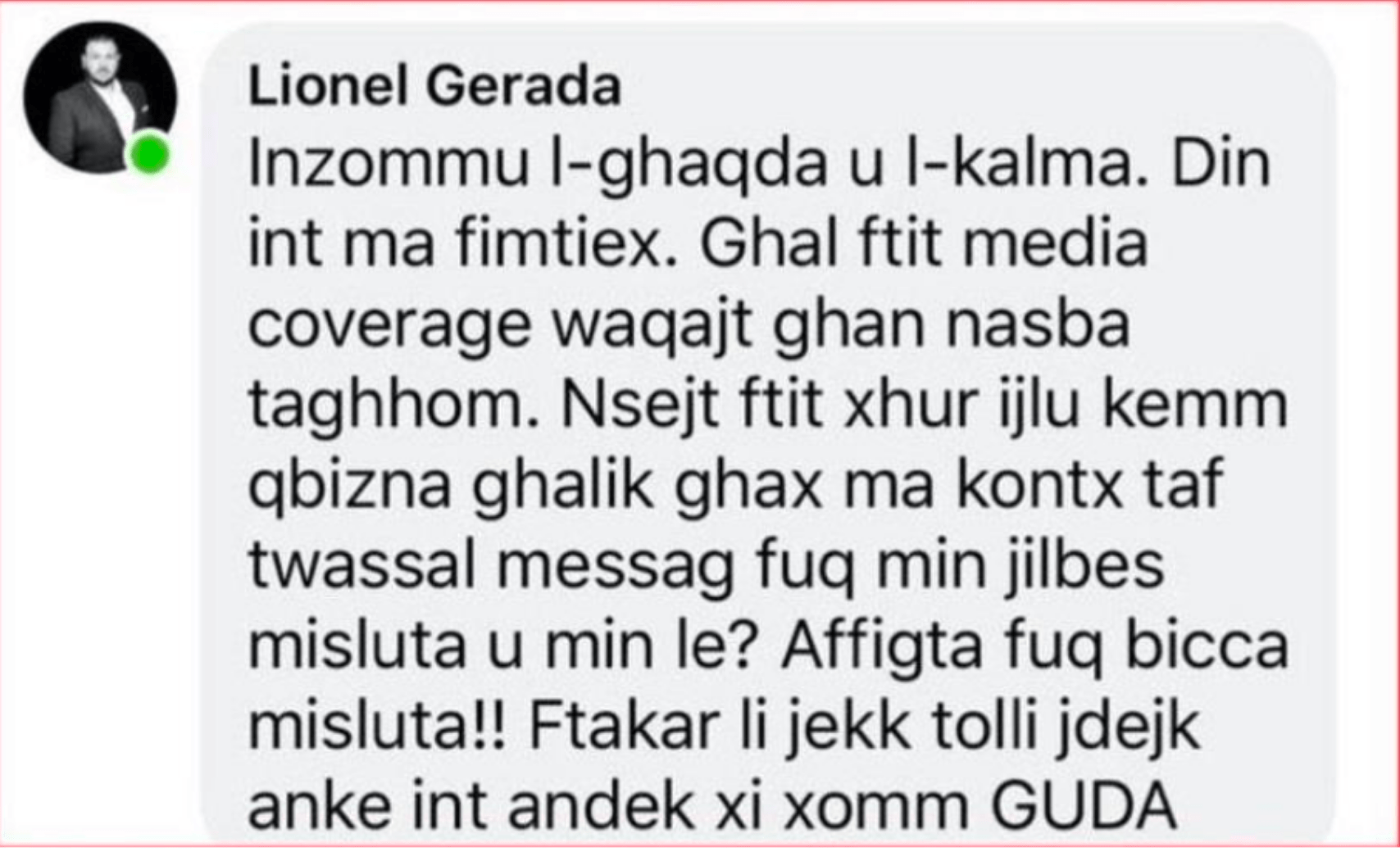 On Facebook, Gerada called Minister Bartolo a traitor. No action is known to have been taken by the MTA against Gerada.