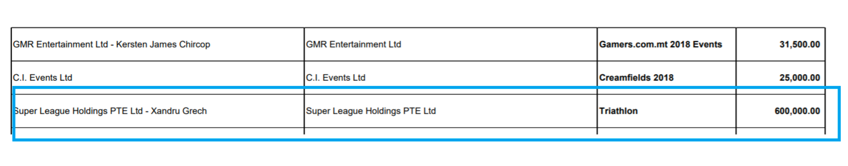 I have never, either personally, or through any legal entity in which I have a beneficial interest, received these above-mentioned funds or sponsorships from the Malta Tourism Authority. Any funds arising from the Super League Triathlon Sponsorship were received entirely by Super League Holding PTE Ltd.