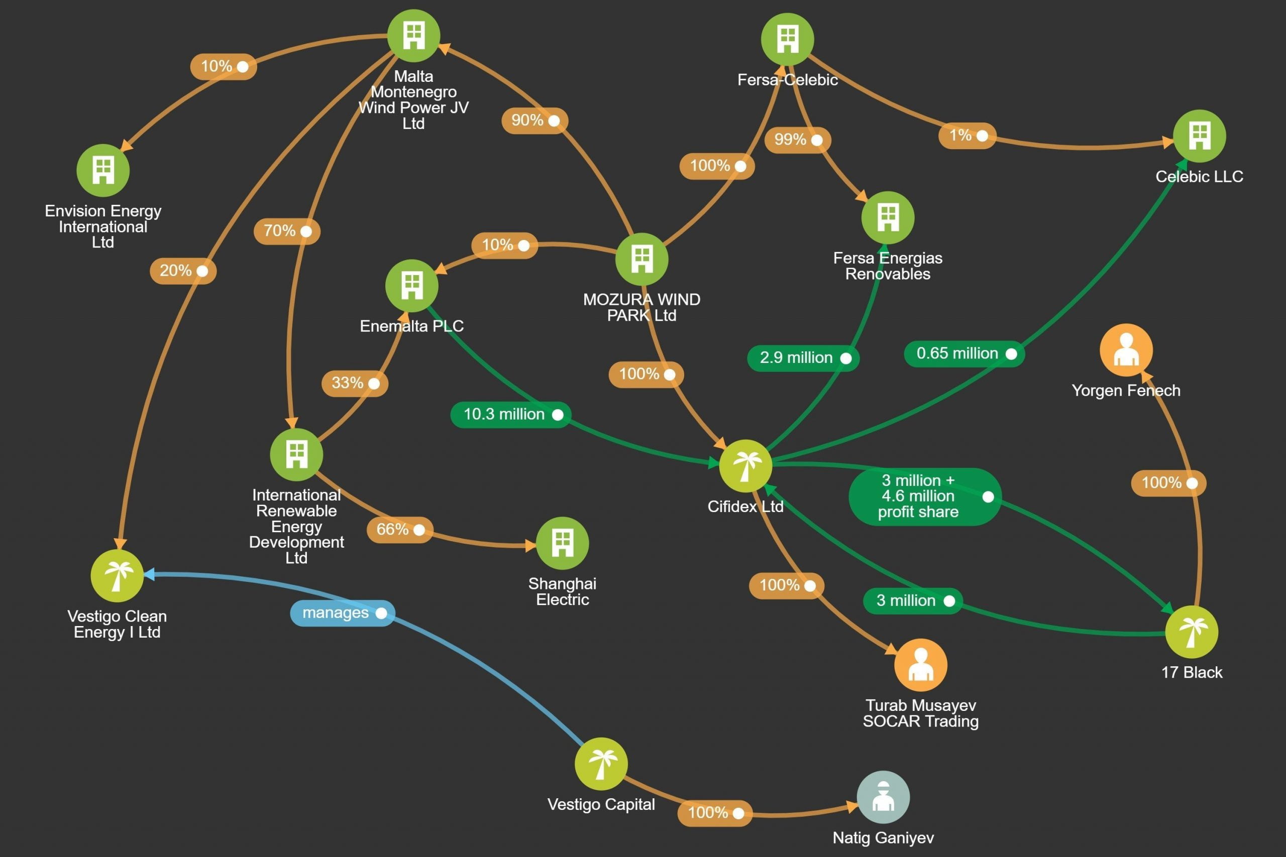 According to Reuters’ findings, Cifidex borrowed €3 million from 17 Black to secure the Mozura wind park shares. Upon payment from Enemalta, Cifidex repaid the €3 million it had borrowed from 17 Black along with another €4.6 million of share profit, according to a source who spoke to The Shift (Reuters reported €4.8 million according to some of its sources).