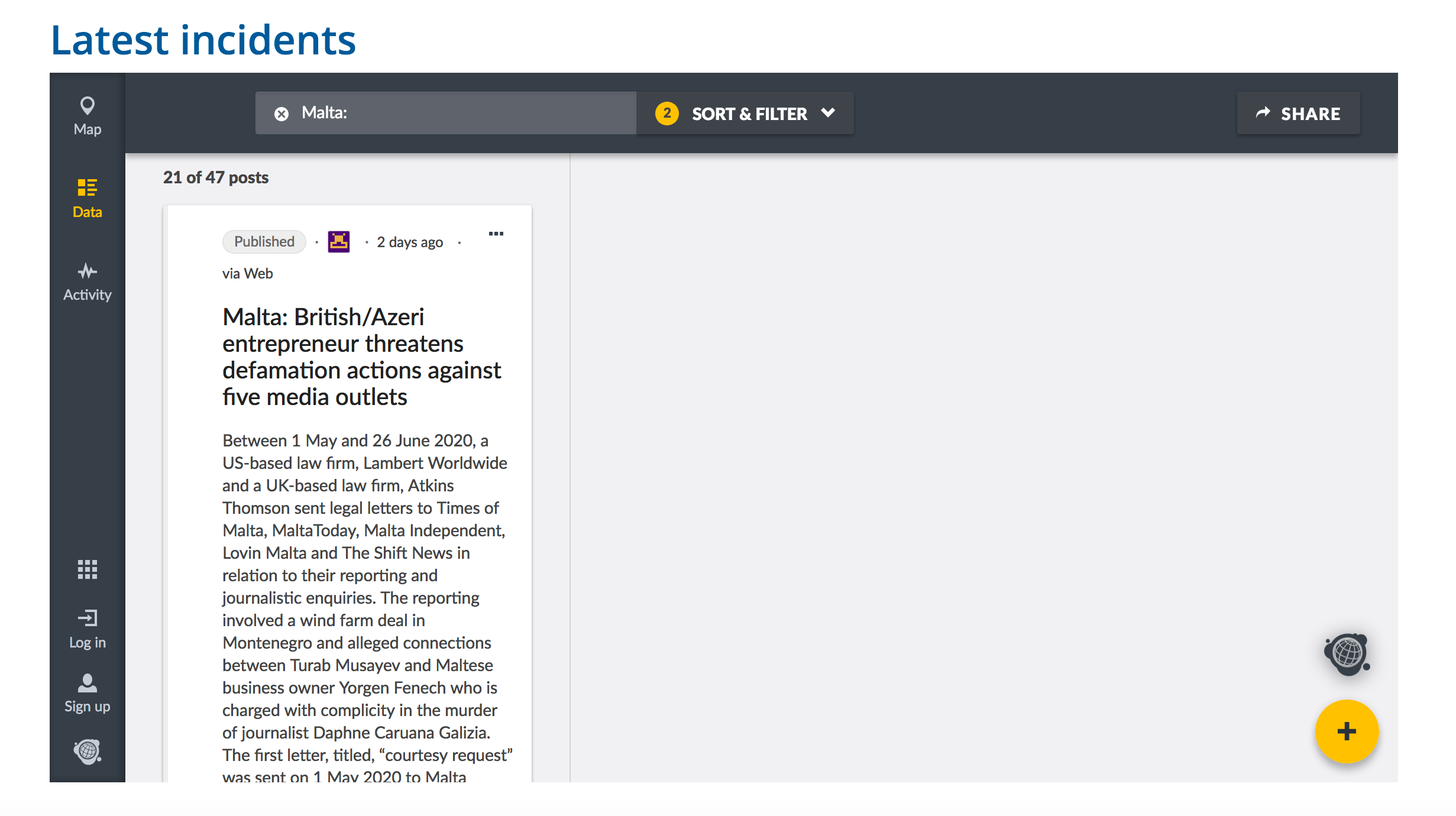 The platform is a European project that tracks threats, violations and limitations imposed on media professionals, run by the European Centre for Press and Media Freedom (ECPMF).