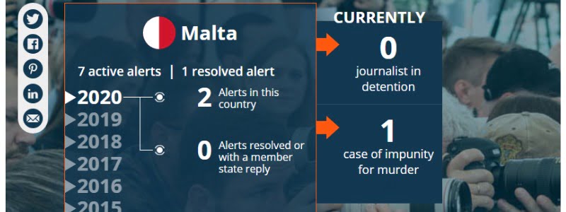 Previous alerts include the four libel suits filed by former Economy Minister Chris Cardona against journalist Daphne Caruana Galizia who was assassinated by a car bomb in Malta on 16 October 2017.