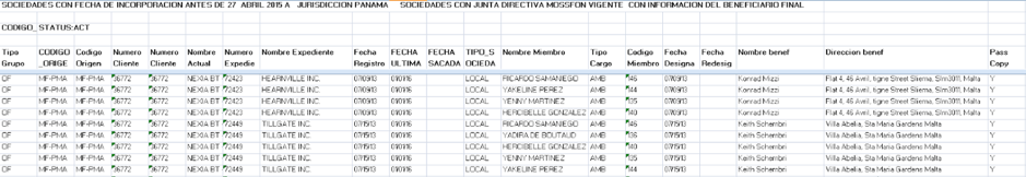 The following day, Cesar sent his team two updated spreadsheets with details of MossFon administered companies.