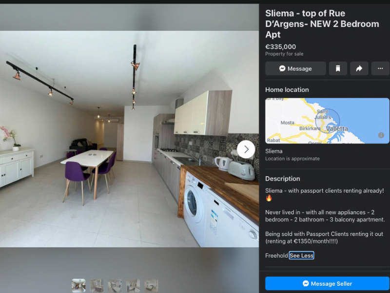 An advert on Facebook promoting the sale of an apartment in Sliema with the real estate agent publicly stating that a ‘passport client’ who is renting out the property has never actually lived in it, draws further attention to the revelations about the rental of properties tied to the cash-for-passports programme.