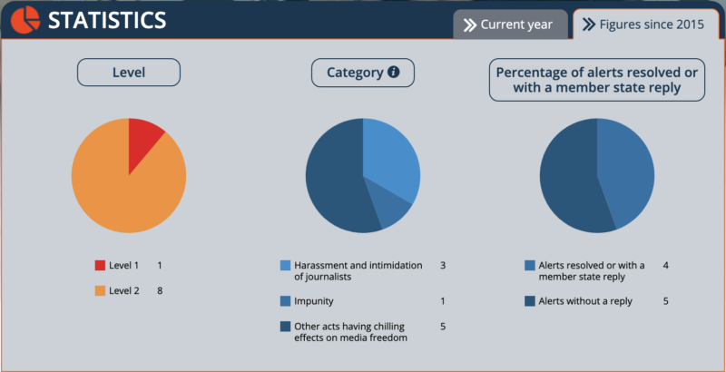 Malta has a total of nine alerts on the Council of Europe’s platform to promote the protection of journalism and safety of journalists, only one of which is marked as “resolved” and another of which is marked as a case of “impunity for murder,” according to its annual report.