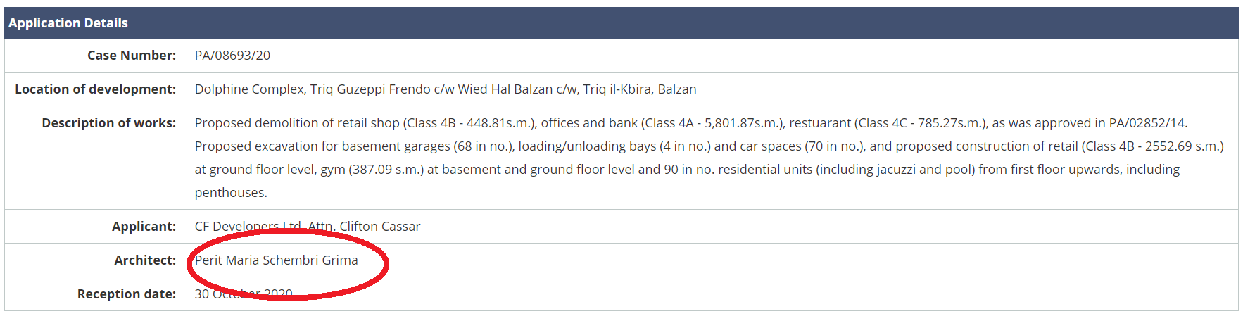 While already involved in the development project by Portelli to replace the Forum Hotel in St Andrew’s, Schembri Grima is also listed as the architect on Portelli’s application to turn the former Dolphin supermarket in Balzan into 90 apartments.