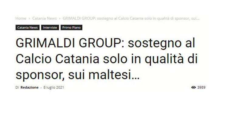 One of Italy’s largest shipping companies, Grimaldi Group, has confirmed it contributed some of the funds used to save the Sicilian football team of Catania from bankruptcy but admitted it had no interest in acquiring shareholding in the Sicilian club, unlike Maltese company Famalco, also mentioned in the deal, whose director said, “whatever I do with my company’s money is my business”.