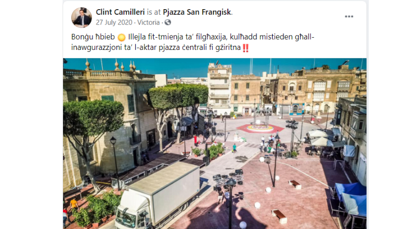 During the last six months of 2020, the Gozitan contractor was given at least four separate additional direct orders to finish off the project, worth more than €370,000. These were for ‘additional works’ over and above the original costs, including the provision of structured stone benches and “repetition of works for paving and embellishment”.