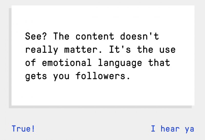 In February 2018, researchers Jon Roozenbeek and Sander van der Linden helped launch the browser game Bad News. The game asks players to take on the role of nefarious content creators who stoke anger and fear by manipulating news and social media within the simulation: they can deploy Twitter bots, photo-shop evidence, and creating conspiracy theories to attract followers – all while trying to maintain a “credibility score” for persuasiveness. Players also earn badges as the game progresses, with each badge representing one of six strategies commonly used in the spread of misinformation.