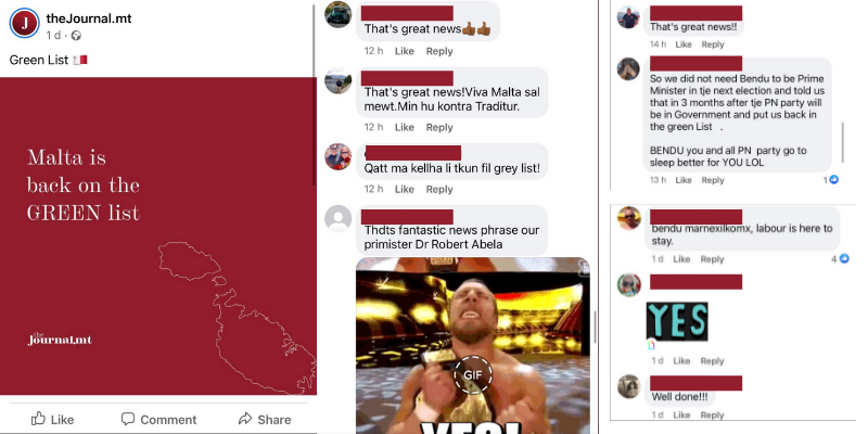Unsurprisingly, Facebook users had an entirely different list in mind and that is the FATF grey list of which Malta is still very much part. The comments that followed were a mixture of celebration (thinking Malta was off the FATF grey list) and confusion, with people wondering why this was not a major news item in other newspapers.