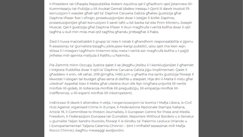 A similar pattern emerges with other events that were poorly covered by the state broadcaster. While TVM did report what Repubblika president Robert Aquilina and Occupy Justice member Pia Zammit said at a vigil held on Saturday evening, the anniversary of the assassination, it completely neglected to report what was said by ten speakers belonging to international press freedom organisations and other figures advocating for the protection of journalists in Malta.