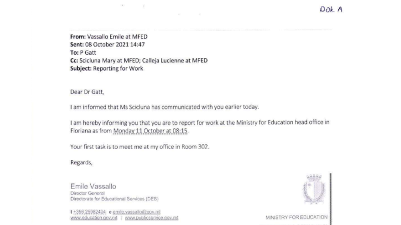 Despite these clear instructions, the College’s head, James Calleja, sent a letter to Gatt informing him that he was not a lecturer any longer and that his salary won’t be paid any longer.
