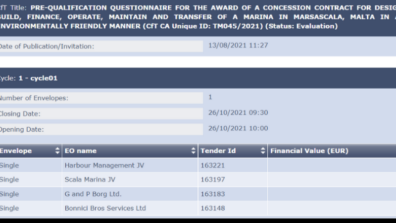 Four bids submitted for Marsascala marina deal, as process proceeds in defiance of public outrage