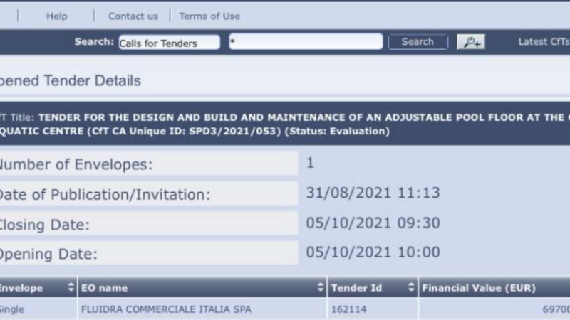 The latest ‘addition’ – some €700,000 in increased costs to be forked out by taxpayers – is the floor of the new pool. Although this was an ‘obvious’ part of the project, it was not included in the original €9 million tender.