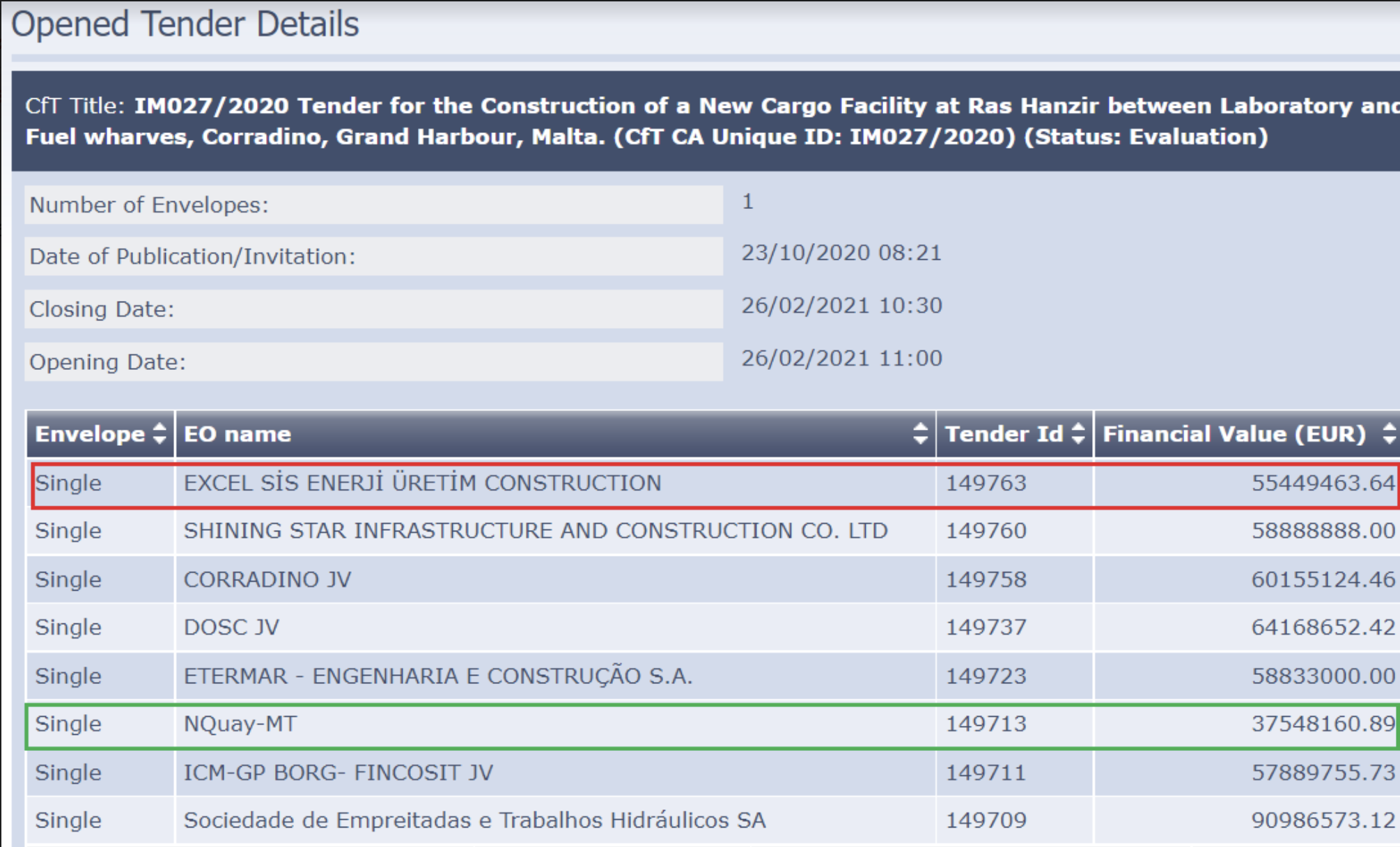 The cheapest offer submitted was €37.5 million but the contract to build a new quay and cargo handling facilities at Ras Hanzir, an abandoned area at the Grand Harbour, was awarded to Portelli’s consortium, Excel Sis, for €55.4 million.